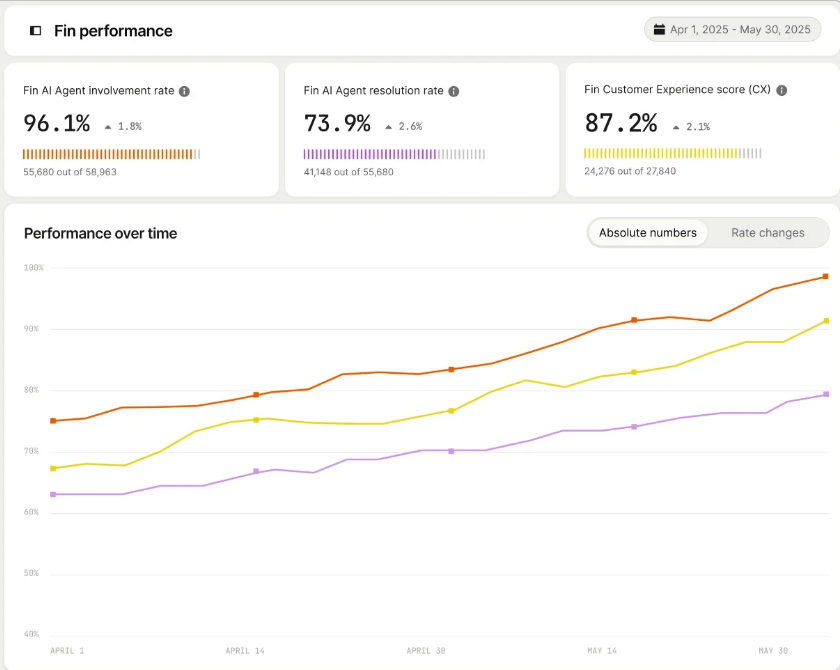 Fin successfully managed 83% of conversations, leaving only 17% for our team.