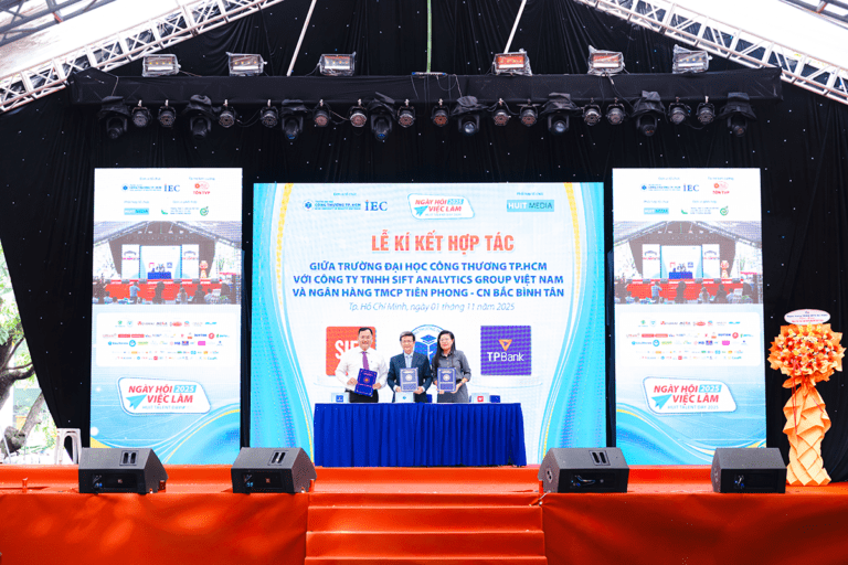 Thỏa thuận hợp tác giữa SIFT và Trường Đại học Công Thương TP. Hồ Chí Minh tập trung vào các hoạt động đào tạo, thực tập, nghiên cứu khoa học và chia sẻ chuyên môn trong lĩnh vực phân tích dữ liệu, tự động hóa và ứng dụng AI trong doanh nghiệp. Thông qua hợp tác này, SIFT sẽ trực tiếp tham gia vào quá trình nâng cao năng lực thực hành, tư duy phân tích và khả năng tiếp cận các công nghệ mới cho sinh viên, giúp rút ngắn khoảng cách giữa kiến thức học thuật và yêu cầu thực tế của thị trường lao động.