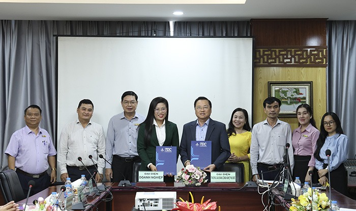 On the afternoon of August 28, Thu Duc College of Technology (TDC) hosted a business cooperation signing ceremony to strengthen collaboration with enterprises in practice-oriented training. The event was attended by Assoc. Prof. Dr. Pham Huu Loc, Principal of TDC, Ms. Phan Thi Thu Thuy, Country Executive Director of SIFT Vietnam, and other industry partners.